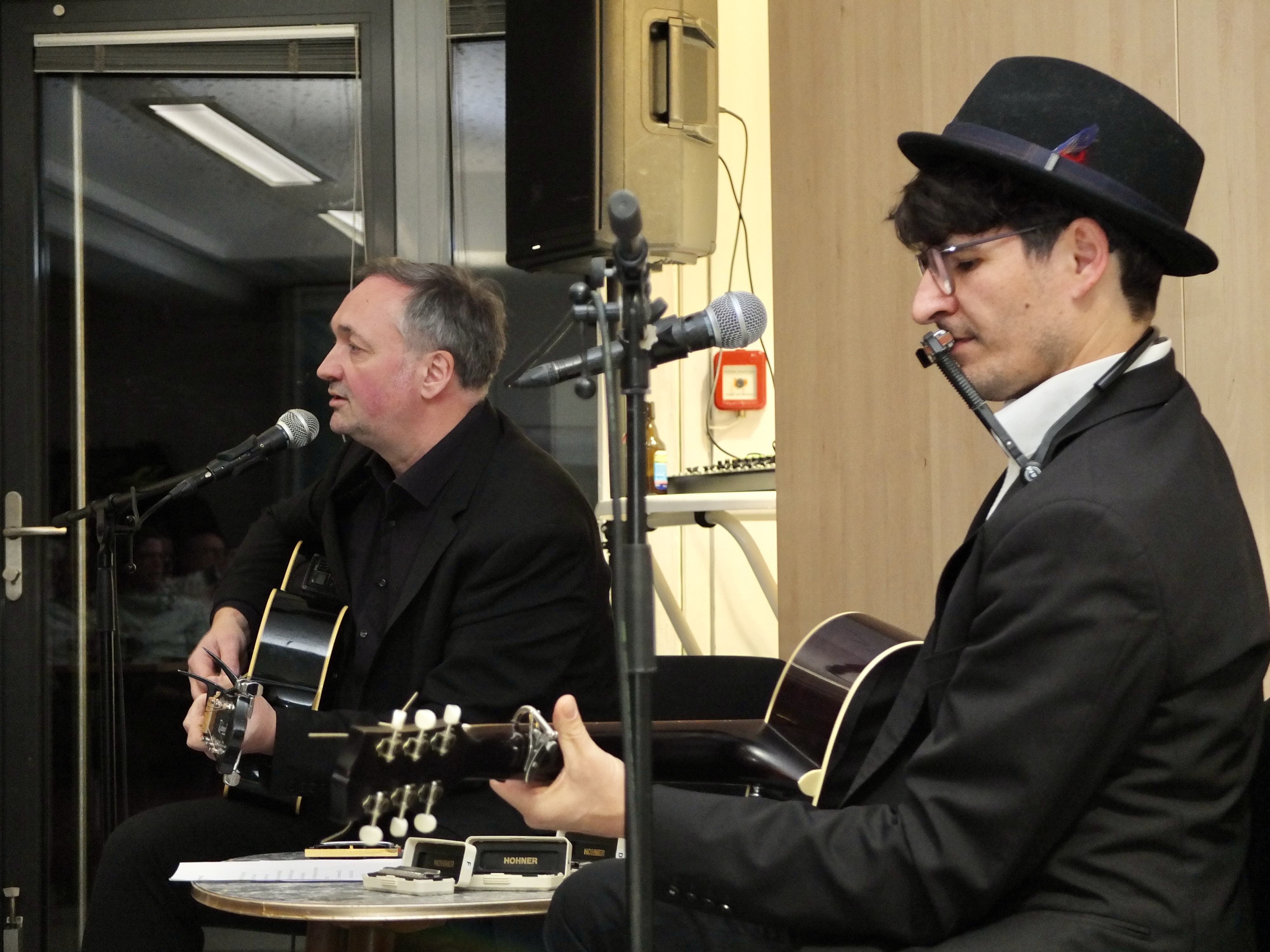 Gespielt wurden Klassiker von Johnny Cash und Bob Dylan von zwei Bandmitgliedern der Johnny Cash Tribute Band „The Line Walkers“ aus Kiel in einem wunderbar reduzierten Akustik Set, bestehend aus zwei Gitarren und zwei Gesangsstimmen, die denen der großen amerikanischen Musikern schon „bedenklich“ nahe kamen.